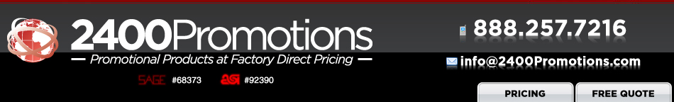 We invite you to browse the pages of our informative website and give us a call on our Toll Free Number at 888-257-7216 or email us at info@2400promotions.com or fill out our Free Quote Form. A member of our staff is waiting to assist you!