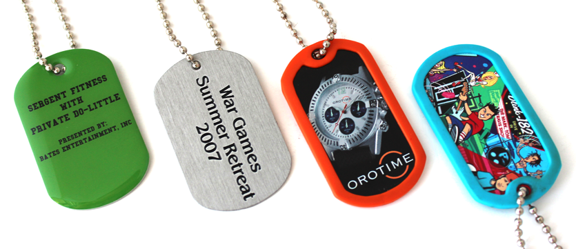 Custom Dog Tags are popular with all age groups. Used in many different ways Dog tags work great for marketing a business, helping to raise money, and are always a great gift idea. The uses are limitless!